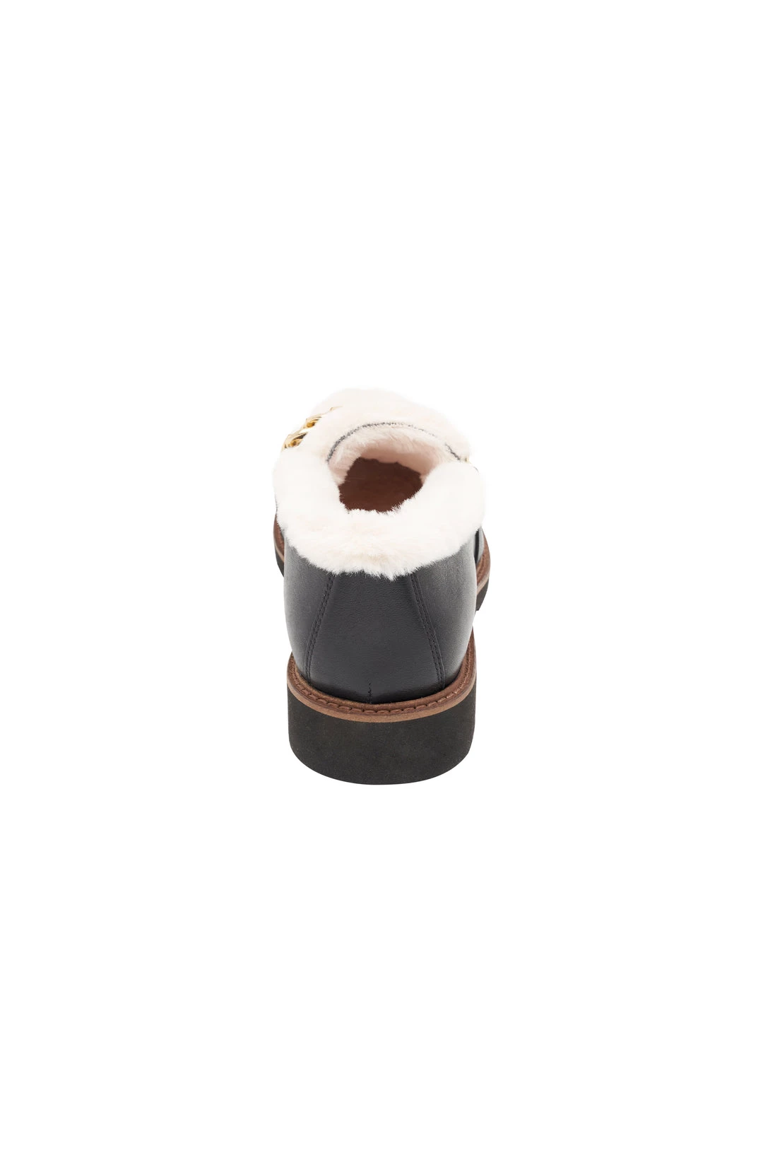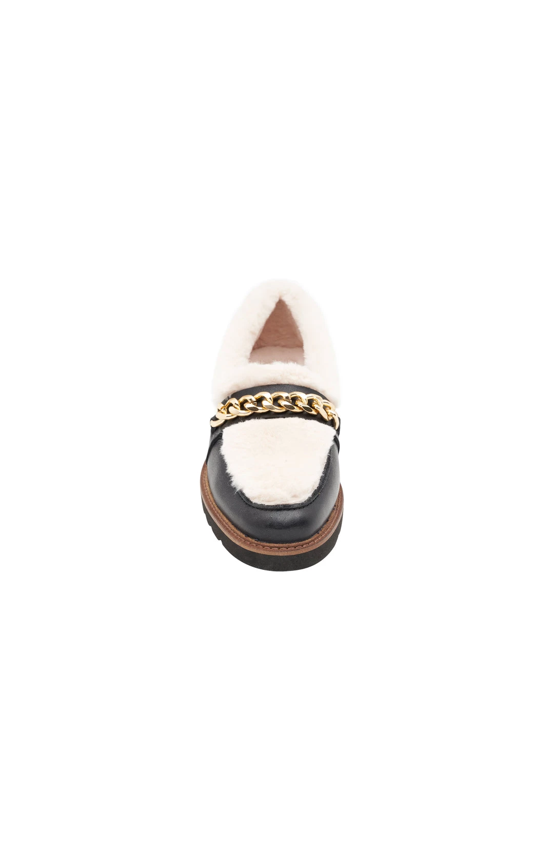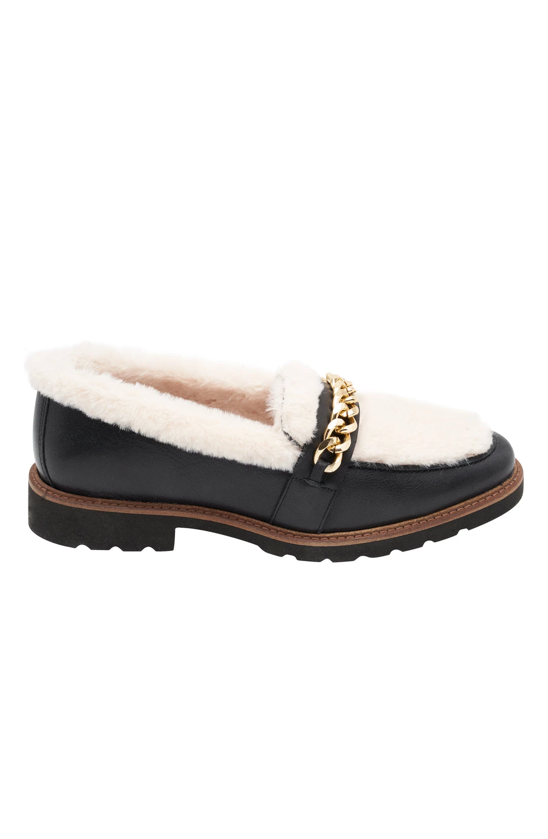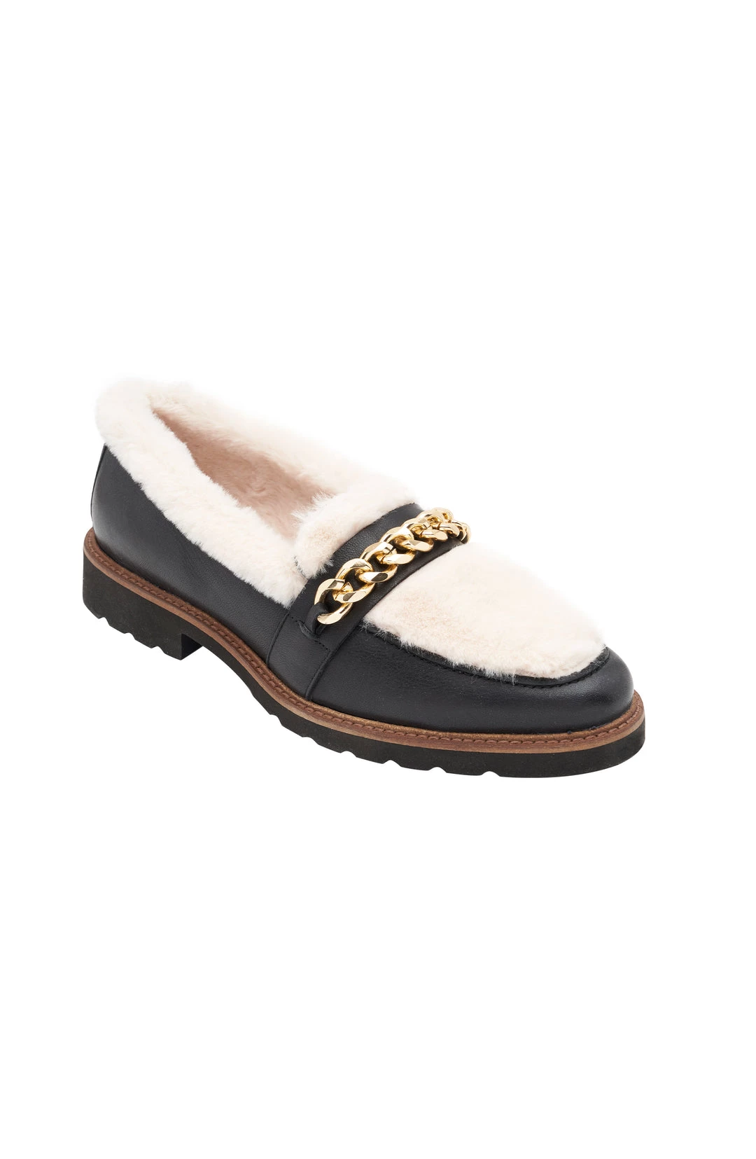 With a lightweight EVA lug outsole, the Phili loafer will have you light on your feet. She adds a touch of luxe with her faux fur and chain keeper details.
