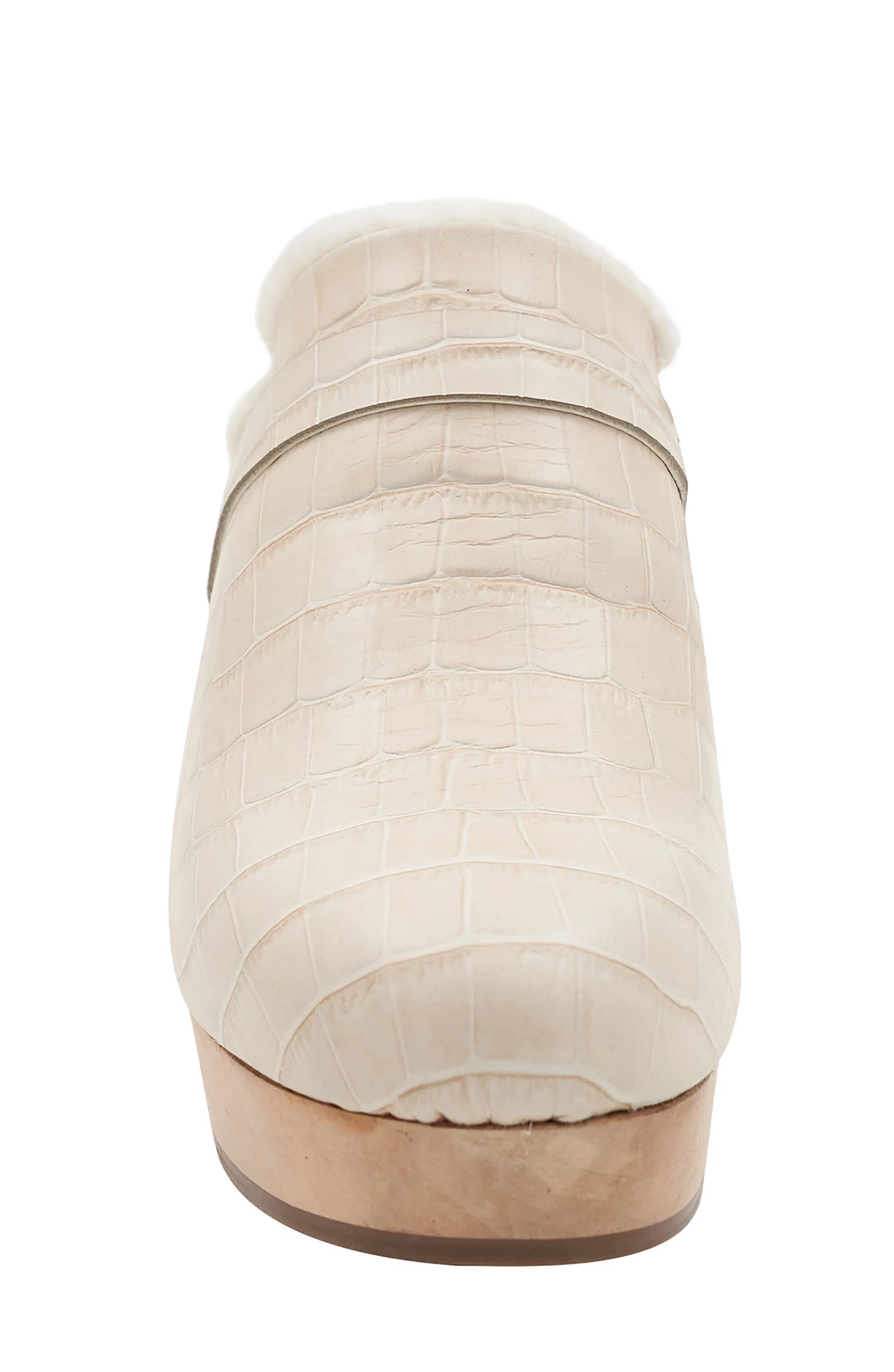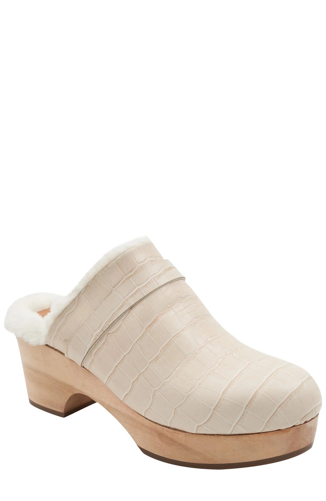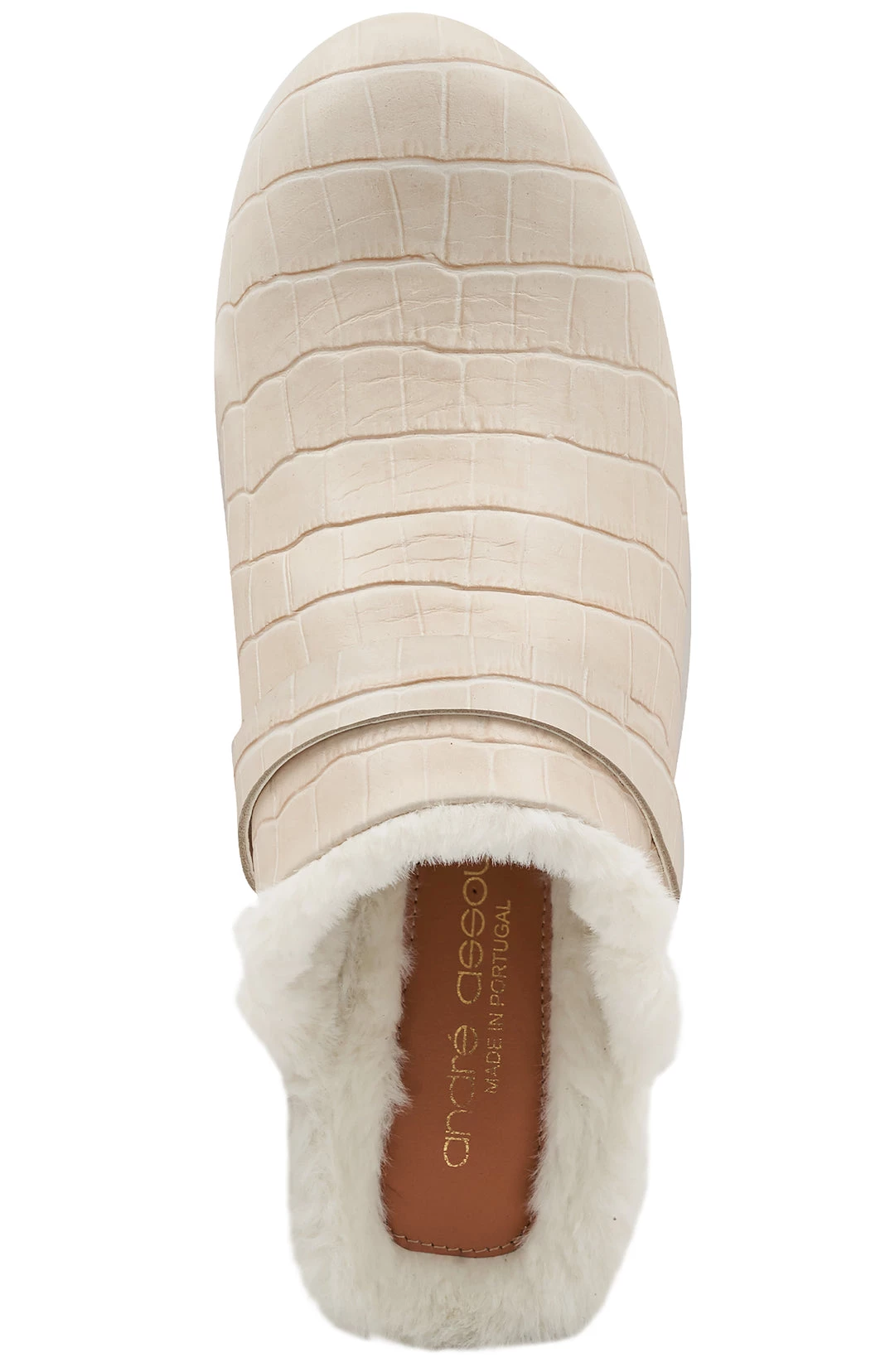 Andre Assous women SOFI IVORY EMBOSSED LEATHER FAUX FUR LINED CLOG