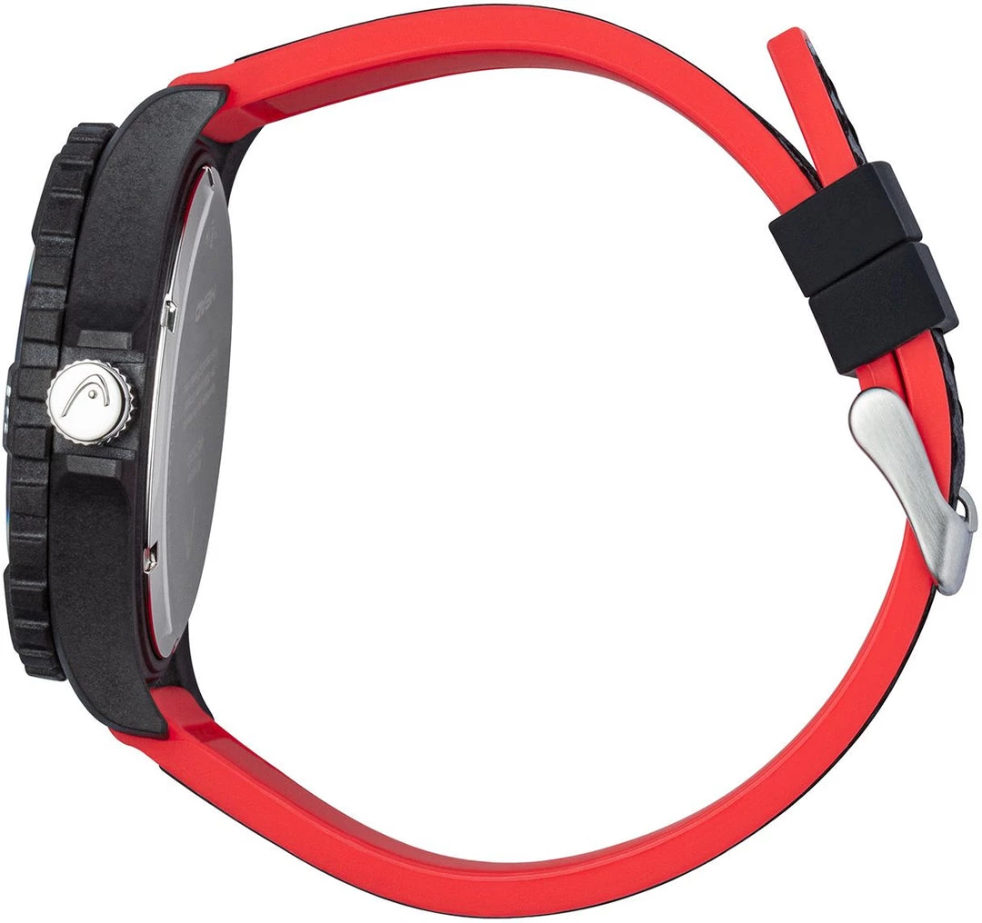 The case is made of durable Ceramic. The case width is 44mm and the dial is protected by a Mineral Crystal. It’s water resistant up to 50 m (165 feet). The Strap is Black Polyurethane and the dial is Black. The movement is Quartz.