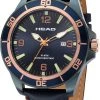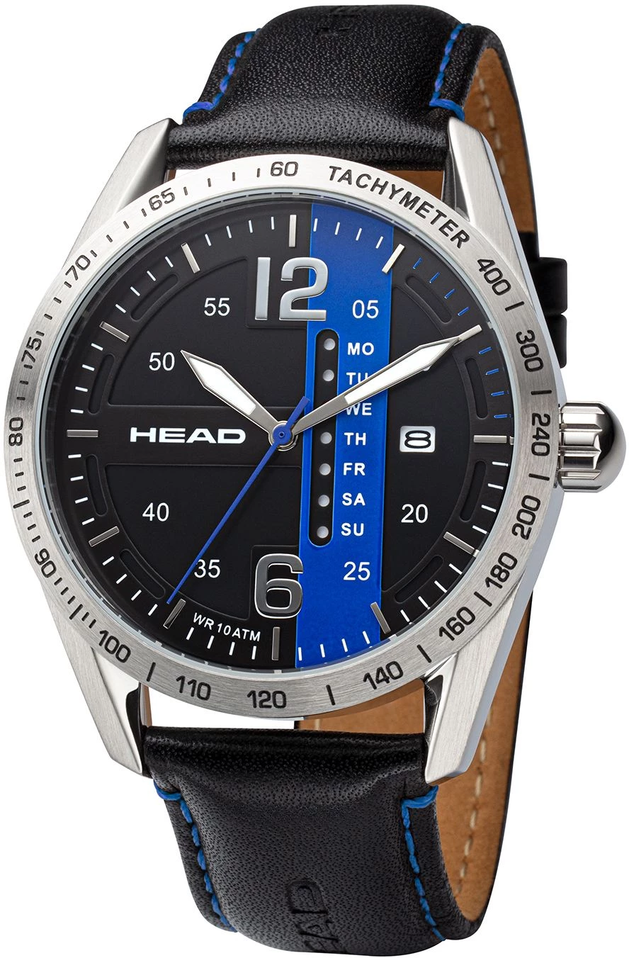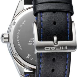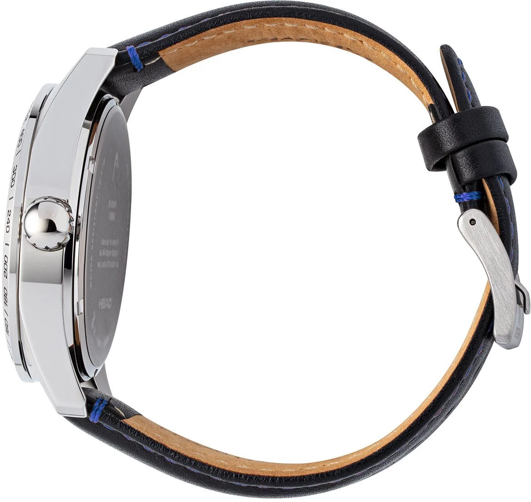 The case is made of durable Stainless Steel. The case width is 44mm and the dial is protected by a Mineral Crystal. It’s water resistant up to 100 m (330 feet). The Strap is Black Leather and the dial is Black. The movement is Quartz.