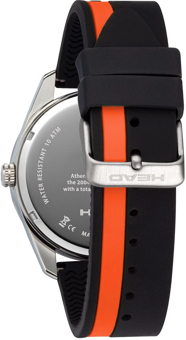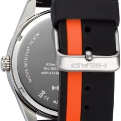 The case is made of durable Stainless Steel. The case width is 44mm and the dial is protected by a Mineral Crystal. It’s water resistant up to 100 m (330 feet). The Strap is Black Silicone and the dial is Black. The movement is Quartz.