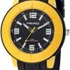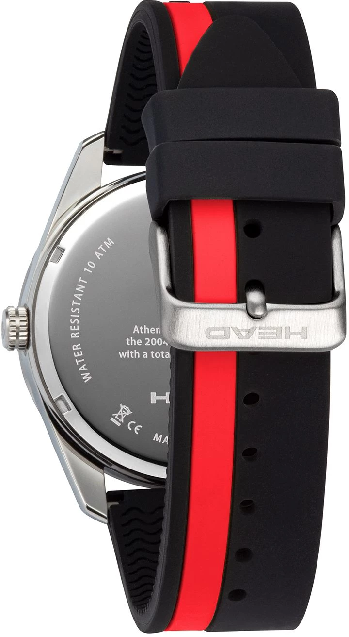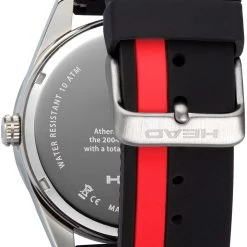 The case is made of durable Stainless Steel. The case width is 44mm and the dial is protected by a Mineral Crystal. It’s water resistant up to 100 m (330 feet). The Strap is Black Silicone and the dial is Black. The movement is Quartz.