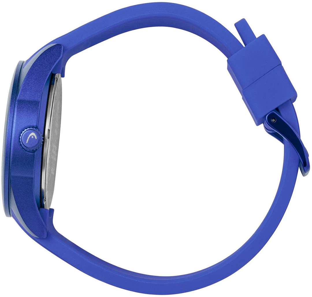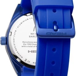 The case is made of durable Aluminum. The case width is 44mm and the dial is protected by a Mineral Crystal. It’s water resistant up to 50 m (165 feet). The Strap is Blue Silicone and the dial is White. The movement is Quartz.