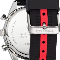 The case is made of durable Stainless Steel. The case width is 44mm and the dial is protected by a Mineral Crystal. It’s water resistant up to 100 m (330 feet). The Strap is Black Silicone and the dial is White. The movement is Quartz.