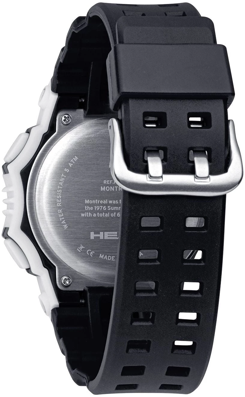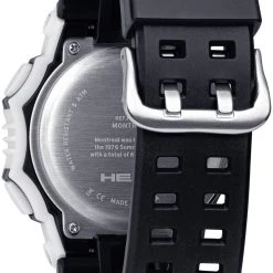 The case is made of durable Resin. The case width is 49mm and the dial is protected by a Mineral Crystal. It’s water resistant up to 50 m (165 feet). The Strap is Black Silicone and the dial is Digital. The movement is Quartz.