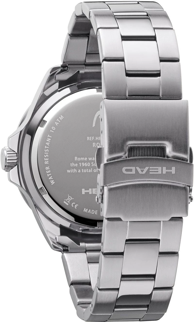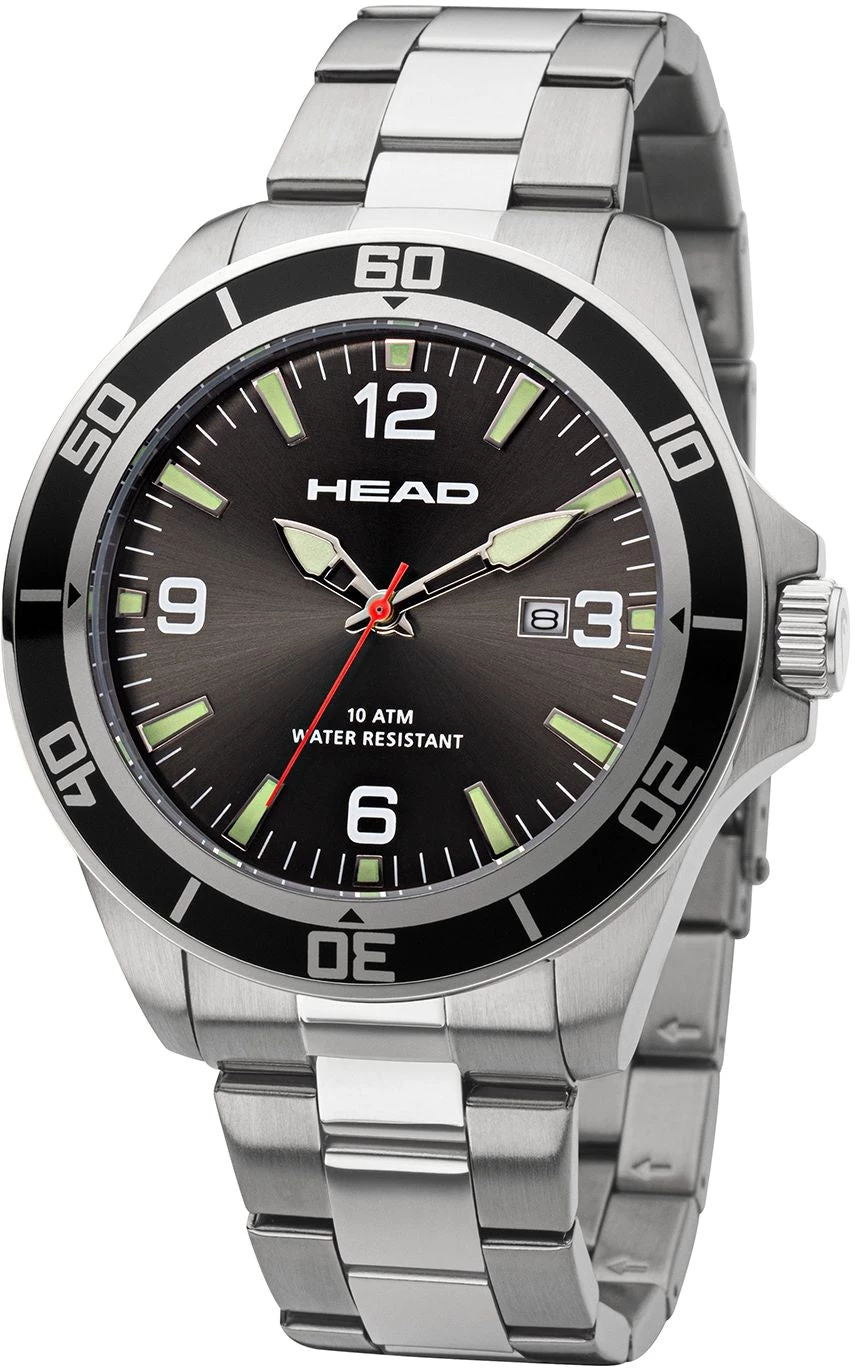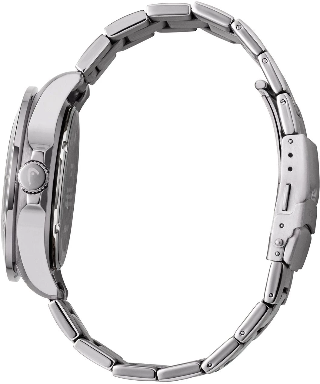 The case is made of durable Stainless Steel. The case width is 43.5mm and the dial is protected by a Mineral Crystal. It’s water resistant up to 100 m (330 feet). The Bracelet is Silver Stainless Steel and the dial is Black. The movement is Quartz.