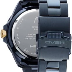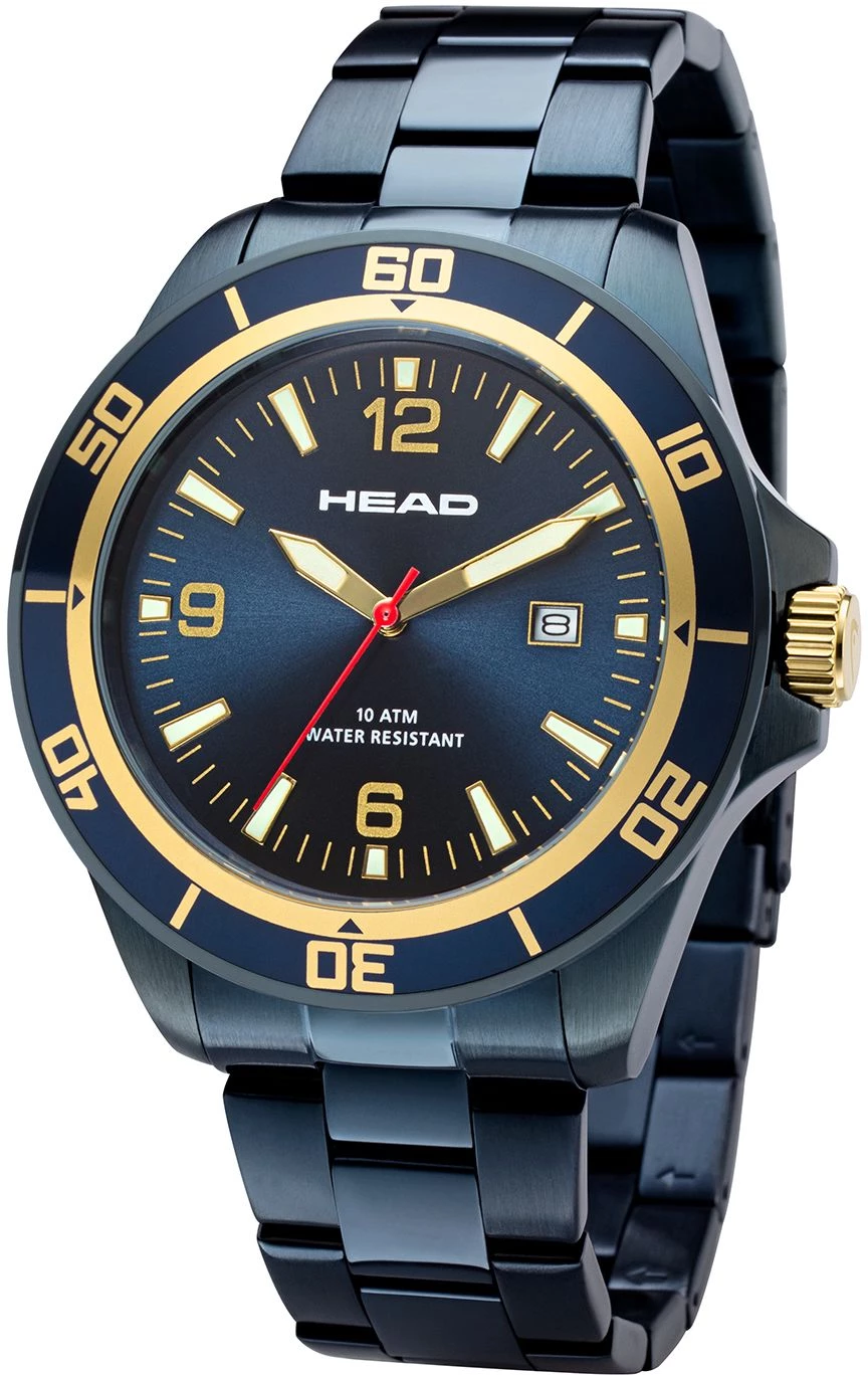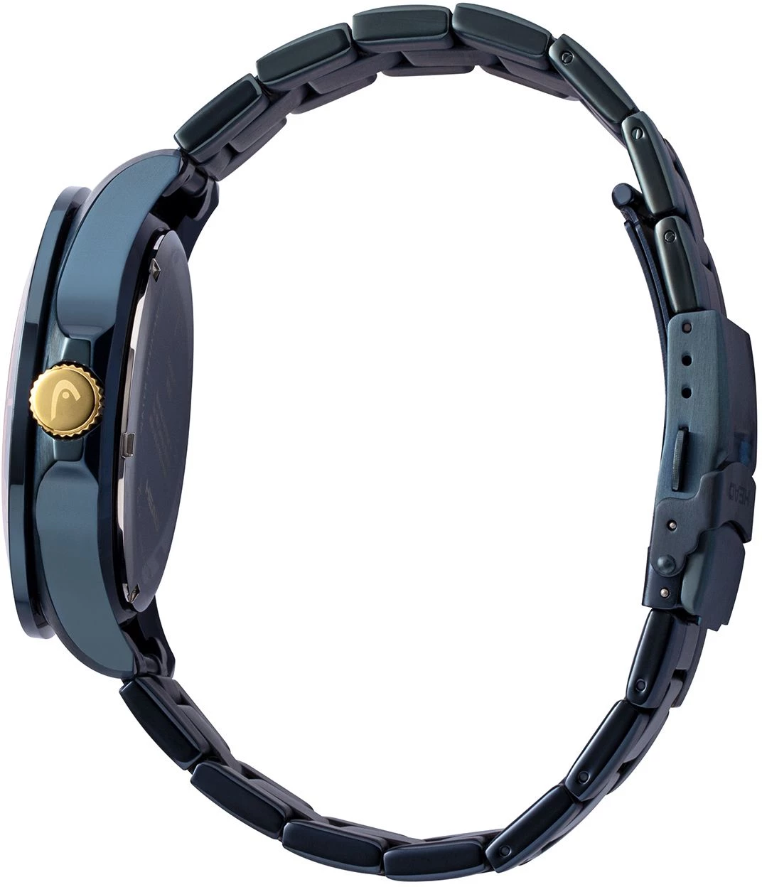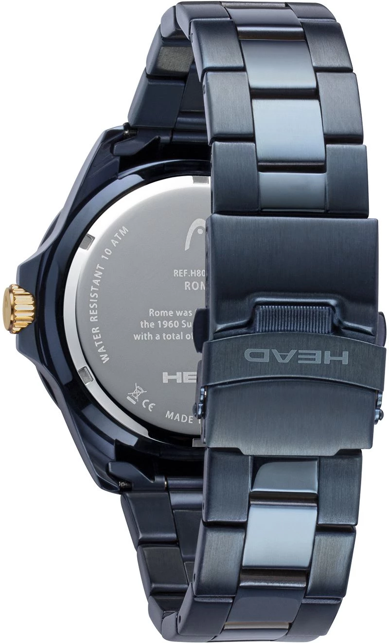 The case is made of durable Stainless Steel. The case width is 43.5mm and the dial is protected by a Mineral Crystal. It’s water resistant up to 100 m (330 feet). The Bracelet is Blue Stainless Steel and the dial is Blue. The movement is Quartz.