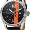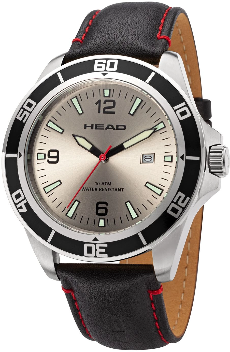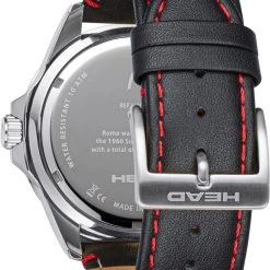 The case is made of durable Stainless Steel. The case width is 44mm and the dial is protected by a Mineral Crystal. It’s water resistant up to 100 m (330 feet). The Strap is Black Leather and the dial is Grey. The movement is Quartz.